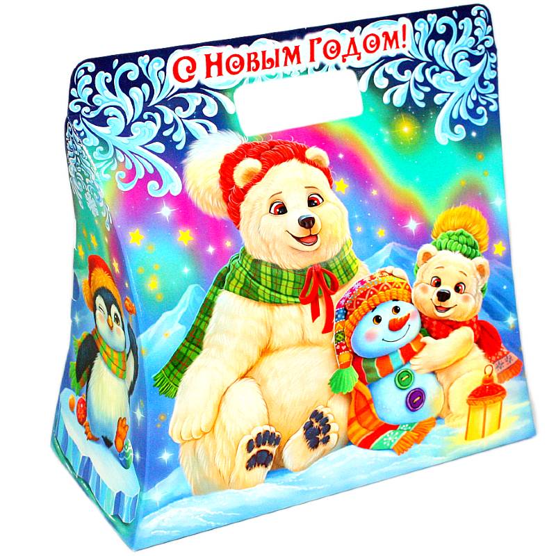 Красивая упаковка с символом года и конечно же любимые конфеты и сладости для самых маленьких.